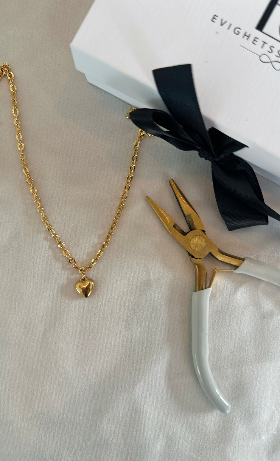 Våra permanenta smycken är mer än bara smycken — de är en symbol för band som inte bryts. När du får ditt smycke följer ett verktyg med, som du använder för att stänga det permanenta låset med. Samt kapar kedjorna med.